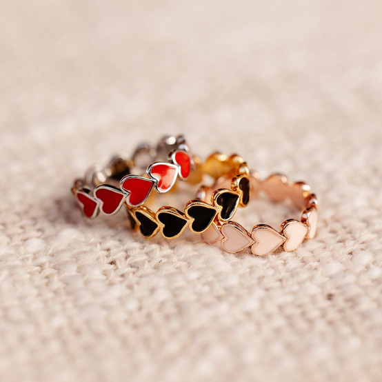 I FELL IN LOVE WITH THIS RING SET when I purchased it last month! I want all of us to buy one, because I literally am simply obsessed and we can twin :) Next up, the LOVE HEARTS BAND RING! Comes in red, black, and pink! I have been wearing mine nearly everyday! Valentine's Day may be gone, but love is still in the air...and love is etched inside the ring, such a hidden cute secret!
